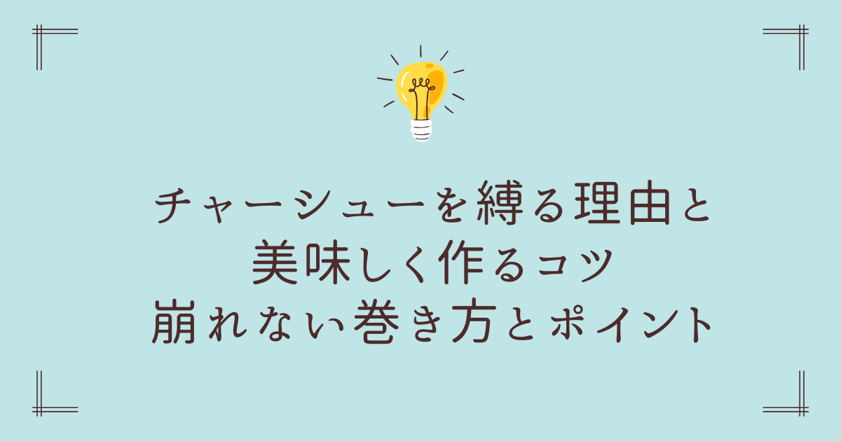 チャーシューの縛り方にはいくつかの方法とコツがあり、道具選びや巻き方によって仕上がりに差が出ます。