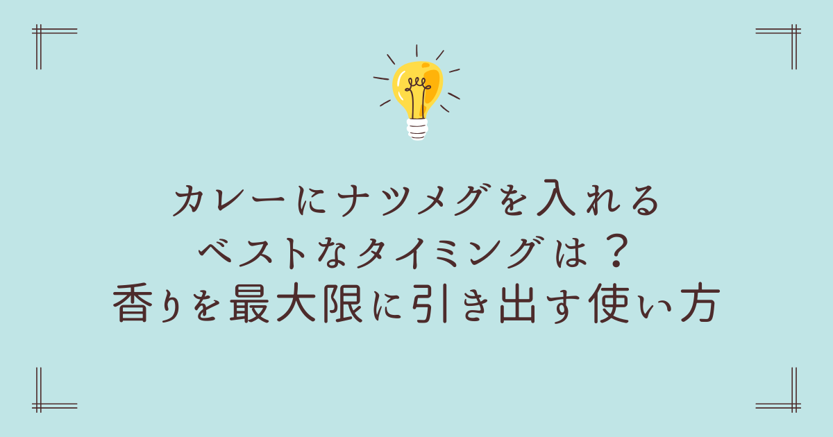 特にナツメグを加えるタイミングや量を見極めることで、家庭のカレーがワンランク上の味わいに変化します。